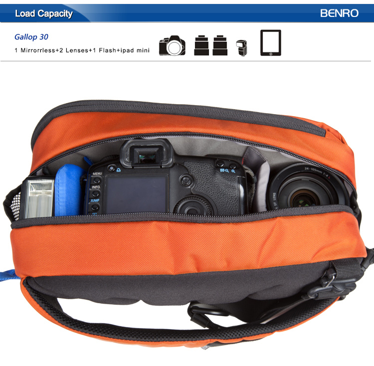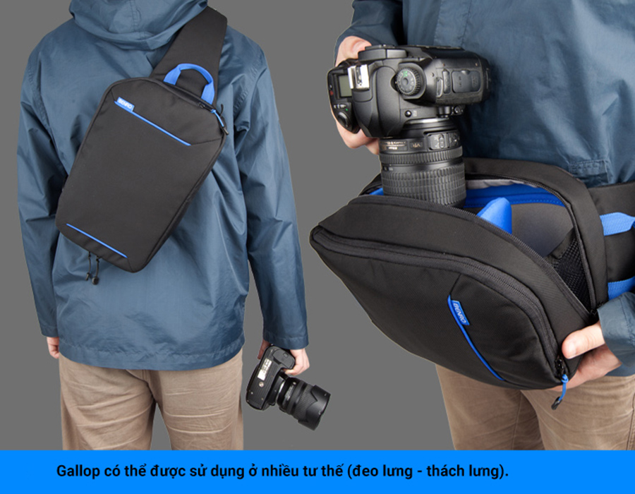 Benro Gallop với thiết kế túi máy ảnh tiện lợi cho các nhiếp ảnh. Gallop có thể được sử dụng như một túi đeo với thiết kế độc đáo, kết cấu tinh tế, khóa có thể điều chỉnh nhanh chóng 360 độ với kỹ thuật hạng nhất, đây là sự lựa chọn tuyệt vời cho nhiếp ảnh gia hi di chuyển bên ngoài.