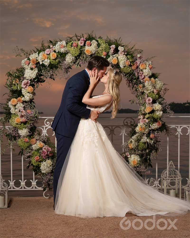 Với bố cục ánh sáng như một studio ngoài trời, sử dụng cảnh hoa, hồ, bầu trời làm phông nền, Flash ngoài máy kết hợp softbox tạo ánh sáng ba chiều mềm mại, giúp mọi chi tiết trở nên sống động. Nhờ AD300Pro, hiệu ứng ánh sáng từ hoàng hôn hay mây trời được kiểm soát hoàn hảo. Cặp đôi có thể tận hưởng khoảnh khắc tự nhiên, trong khi nhiếp ảnh gia vẫn đảm bảo ảnh đạt chất lượng studio.