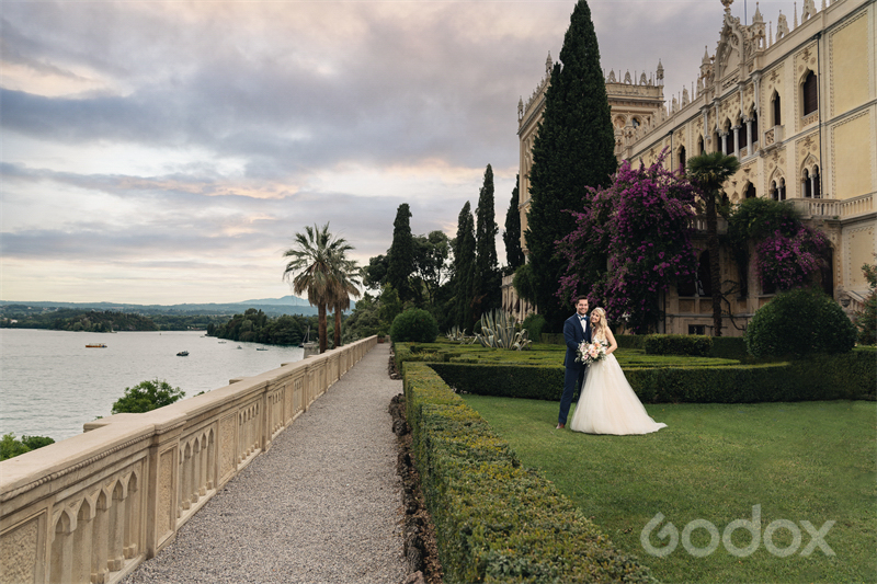 Godox AD300Pro tạo hiệu ứng ánh sáng mềm cho ảnh nhóm và tiệc cưới, tránh bóng cứng và giữ chi tiết không gian. Softbox AD-S65W phân tán ánh sáng đều, tạo cảm giác ba chiều. Nhờ vậy, cặp đôi và khách mời nổi bật, đồng thời khung cảnh xung quanh vẫn giữ nguyên vẻ đẹp tự nhiên. Đây là yếu tố quan trọng giúp bức ảnh vừa có chiều sâu vừa sinh động, khiến người xem cảm nhận trọn vẹn không khí lễ cưới.