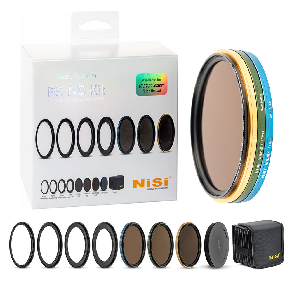 - Bộ lọc Swift FS ND bao gồm ba bộ lọc ND 82mm ND8 (3 Stop), ND64 (6 Stop) và ND1000 (10 Stop).