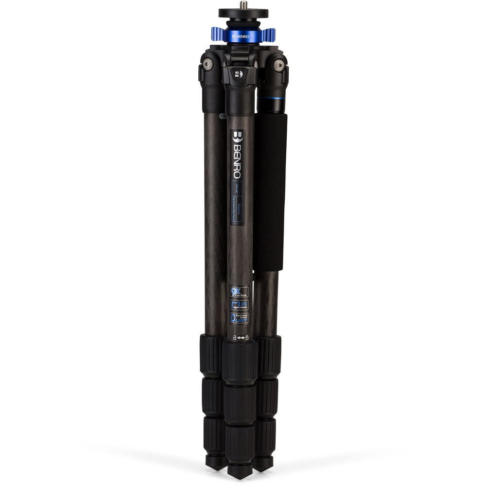 - Được làm từ carbon 9 lớp, chân máy có 4 phần và được khóa bằng cơ chế twist locks, có thể kéo dài đến chiều cao tối đa 155.4 cm.