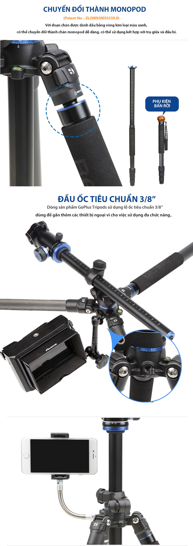 | Chiều cao Mono pod | 1775mm | |