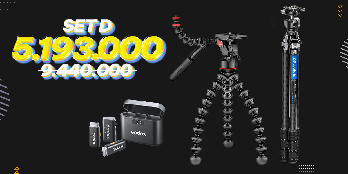 D: Chân máy Joby Gorillapod 5K Video PRO - JB01561 (Xem SP) + Chân máy ảnh Tripod Leofoto Mr.Y (đen) - LY-224C+LH-25R (Xem SP) + Micro không dây Godox - WEC Kit 2 (Xem SP)