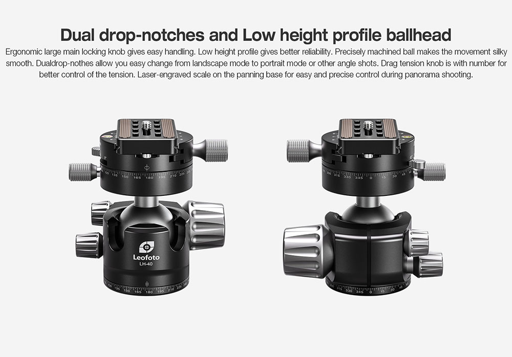 Với tải trọng lên tới 20kg, LH-40PR có thể hỗ trợ hầu hết các loại máy ảnh và ống kính hiện nay. Điều khiến cho LH-40PR trở nên đặc biệt đó là chiều cao lên tới 104mm, cho phép bạn có thể đặt máy ảnh ở những vị trí cao hơn để chụp những bức ảnh tuyệt đẹp.