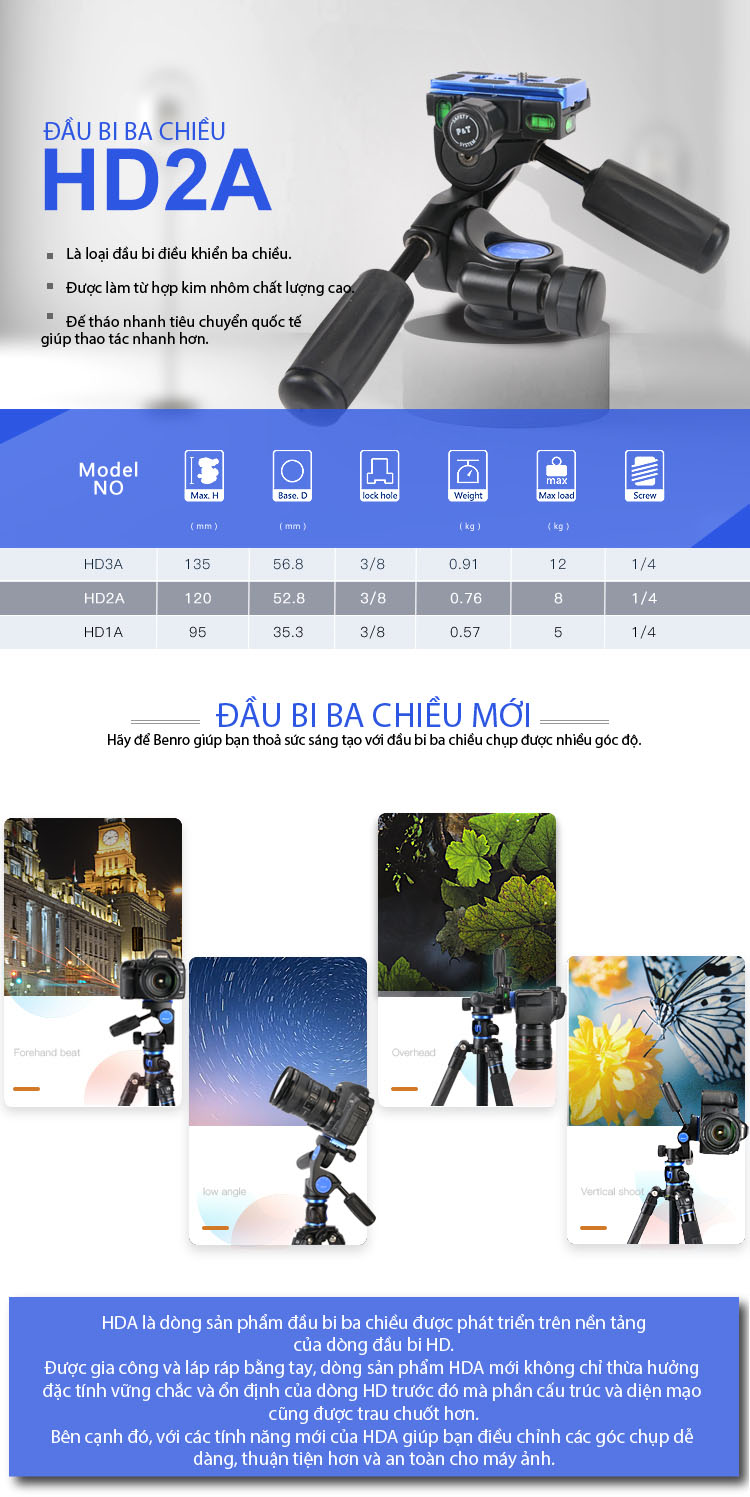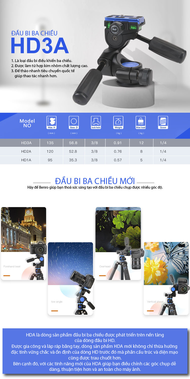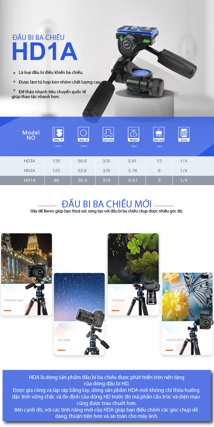 Hoằng Quân - nhà phân phối Đầu bi Benro Ballhead - HD1A / HD2A / HD3A chính hãng tại Việt Nam. Các sản phẩm có mặt tại khắp các đại lý trên toàn quốc. Quý khách có thể yên tâm đặt hàng tại website: hoangquanco.com miễn phí giao hàng toàn quốc. Ngoài ra, Showroom Hoằng Quân có mặt tại TPHCM, Hà Nội, Đà Nẵng để quý khách có thể đến trải nghiệm sản phẩm tốt nhất!