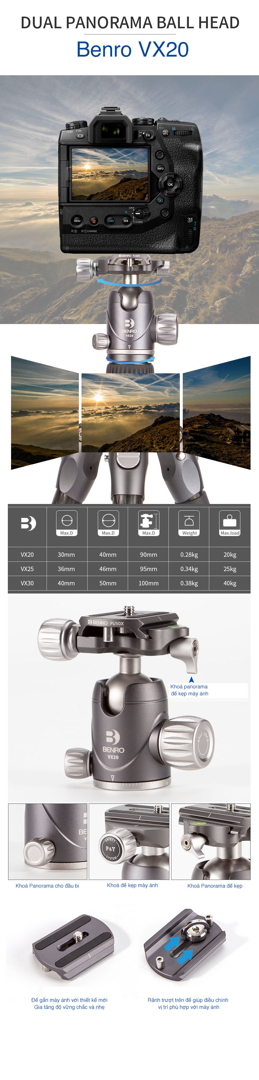 Hoằng Quân - nhà phân phối Đầu bi Benro Ballhead - VX20 / VX25 chính hãng tại Việt Nam. Các sản phẩm có mặt tại khắp các đại lý trên toàn quốc. Quý khách có thể yên tâm đặt hàng tại website: hoangquanco.com miễn phí giao hàng toàn quốc. Ngoài ra, Showroom Hoằng Quân có mặt tại TPHCM, Hà Nội, Đà Nẵng để quý khách có thể đến trải nghiệm sản phẩm tốt nhất!