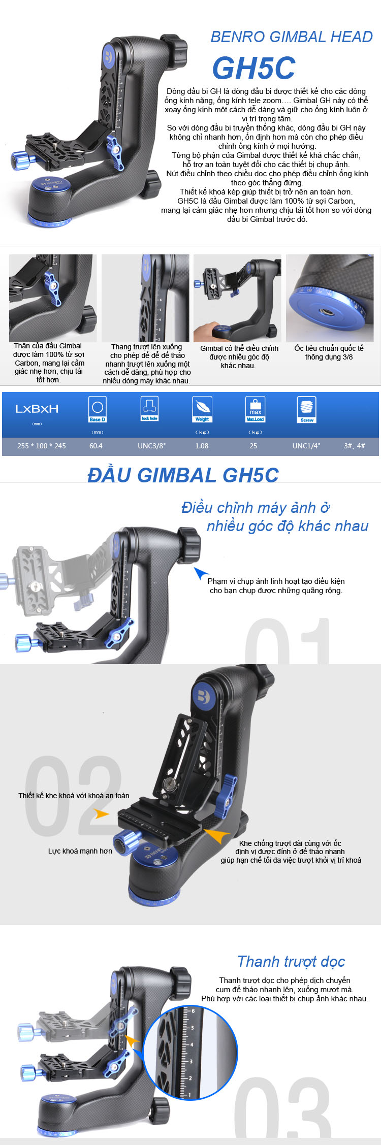 - Đầu Benro Gimbal Head - GH5C