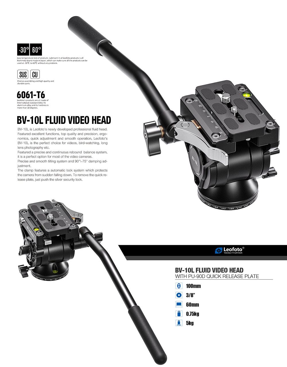 Leofoto BV-10L là một phụ kiện máy quay - đầu quay cao cấp của hãng Leofoto. Với thiết kế chất lượng và khả năng chịu tải lớn, đầu quay Leofoto BV-10L là sự lựa chọn hoàn hảo cho quay video chuyên nghiệp. Chiều cao linh hoạt, đầu vít tiêu chuẩn 3/8" và khả năng chịu tải mạnh mẽ đến 5kg làm cho Leofoto BV-10L trở thành thiết bị không thể thiếu cho nhà sản xuất video và làm phim.