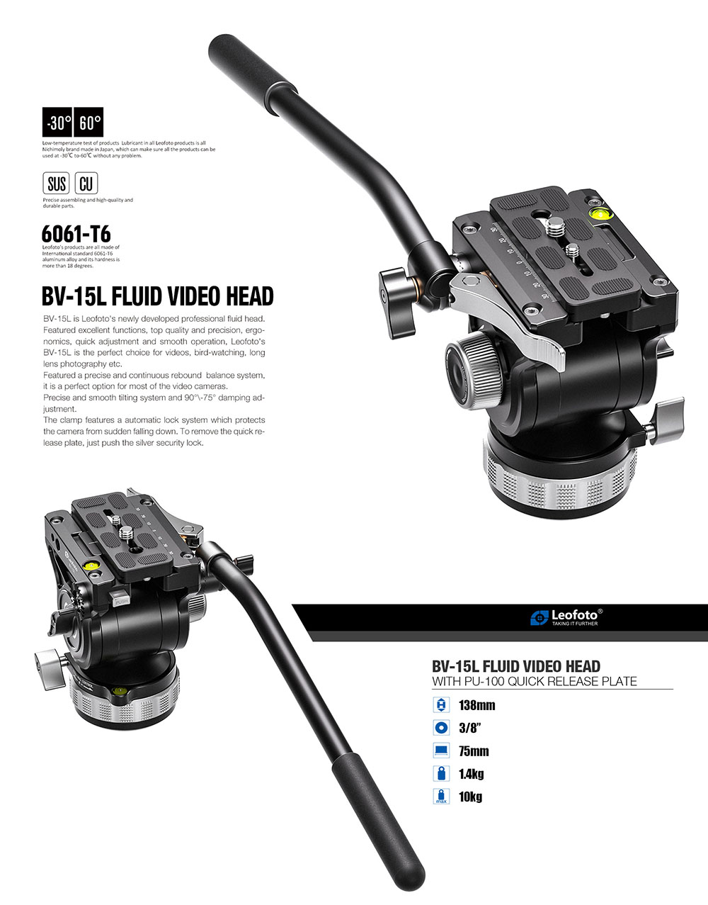 Leofoto BV-15L là một phụ kiện máy quay - đầu quay cao cấp của hãng Leofoto. Với thiết kế chất lượng và khả năng chịu tải lớn, đầu quay Leofoto BV-15L là sự lựa chọn hoàn hảo cho quay video chuyên nghiệp. Chiều cao linh hoạt, đầu vít tiêu chuẩn 3/8" và khả năng chịu tải mạnh mẽ đến 10kg làm cho Leofoto BV-15L trở thành thiết bị không thể thiếu cho nhà sản xuất video và làm phim.
