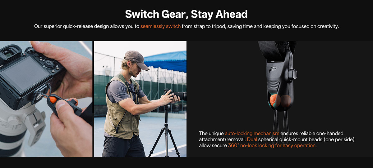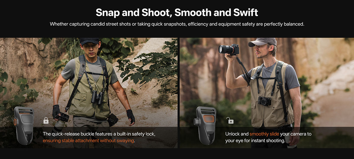 Cấu trúc thông minh cho phép gắn – tháo thiết bị nhanh, giúp nhiếp ảnh gia bắt trọn khoảnh khắc tức thì mà không bị chậm trễ.
