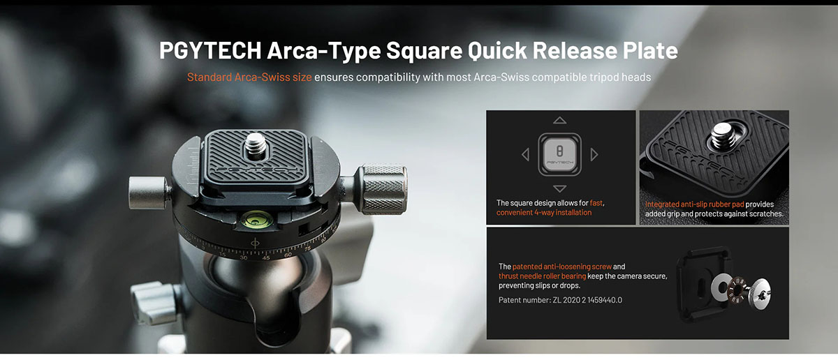 6. Plate lắp nhanh PGYTECH tương thích nhiều Đầu bi tripod chuẩn Arca-Swiss
