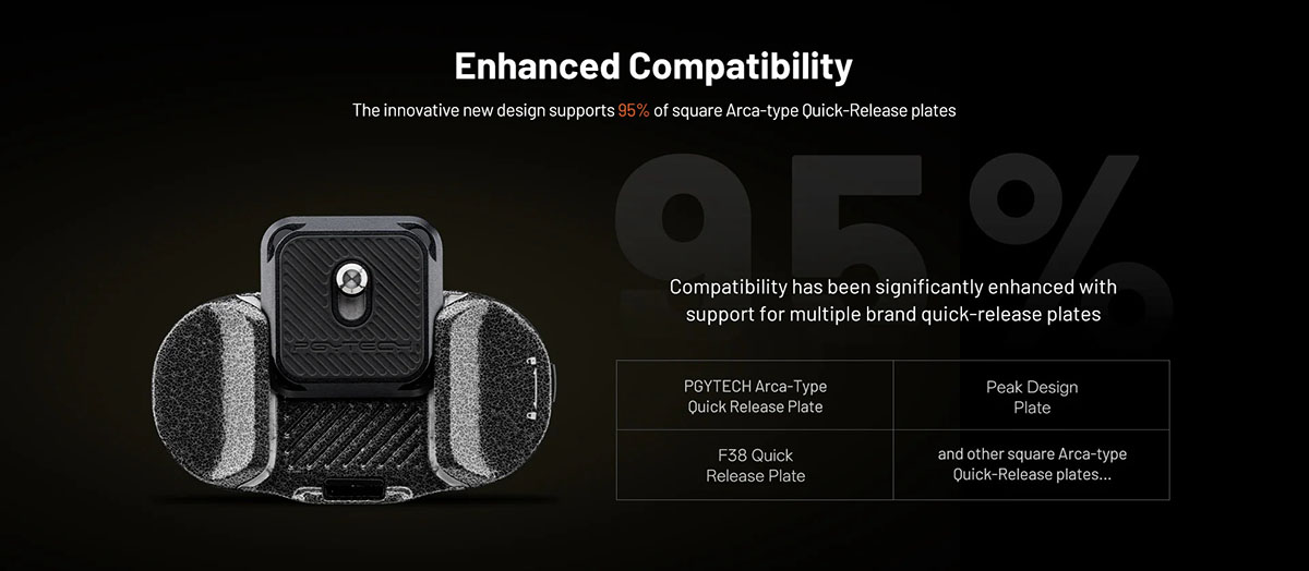 - Tương thích với tới 95% đế tháo lắp nhanh vuông chuẩn Arca.