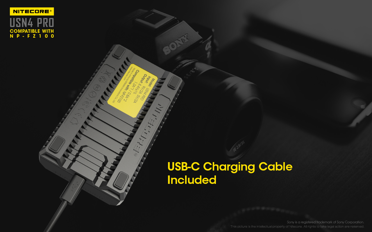 Đế sạc pin Nitecore USN4 PRO - Giải pháp sạc nhanh và hiệu quả cho pin NP-FZ100 của Sony. Với kết nối USB-Type C tiện lợi, kích thước nhỏ gọn (125 x 70 x 29 mm), và trọng lượng nhẹ chỉ 95g, đây là phụ kiện lý tưởng để duy trì năng lượng cho máy ảnh của bạn mọi nơi mọi lúc.