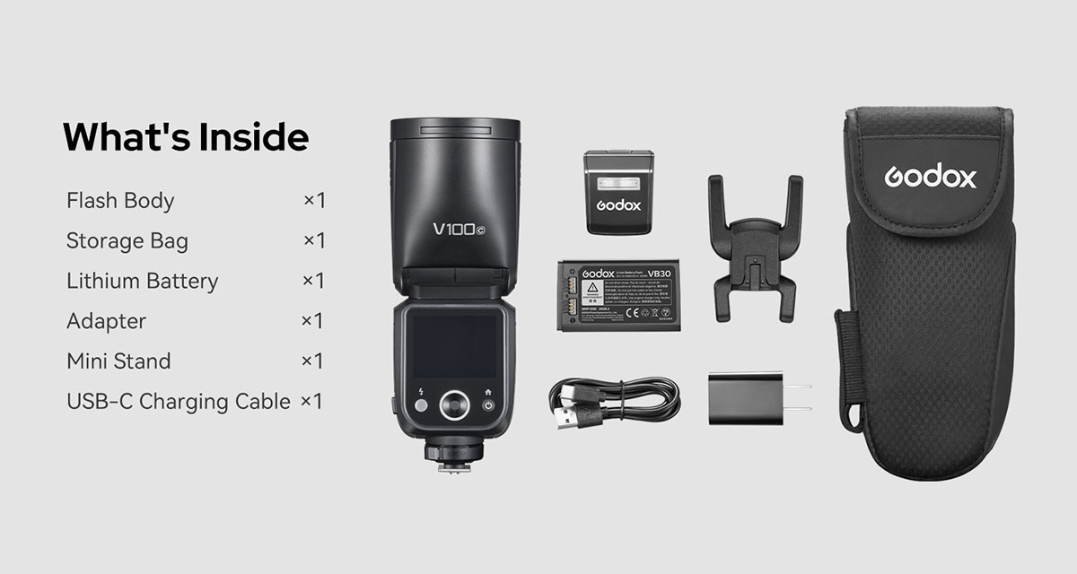 Godox V100 dành cho Canon/Sony/Fujifilm/Nikon của hãng Godox với công suất 100W mạnh mẽ và thiết kế đầu tròn sáng tạo. V100 là một đèn flash nhỏ gọn và dễ sử dụng dành cho các nhiếp ảnh gia chụp chân dung. Được thiết kế với đèn phụ tích hợp, V100 rất phù hợp cho việc chụp ảnh ngoại cảnh.
