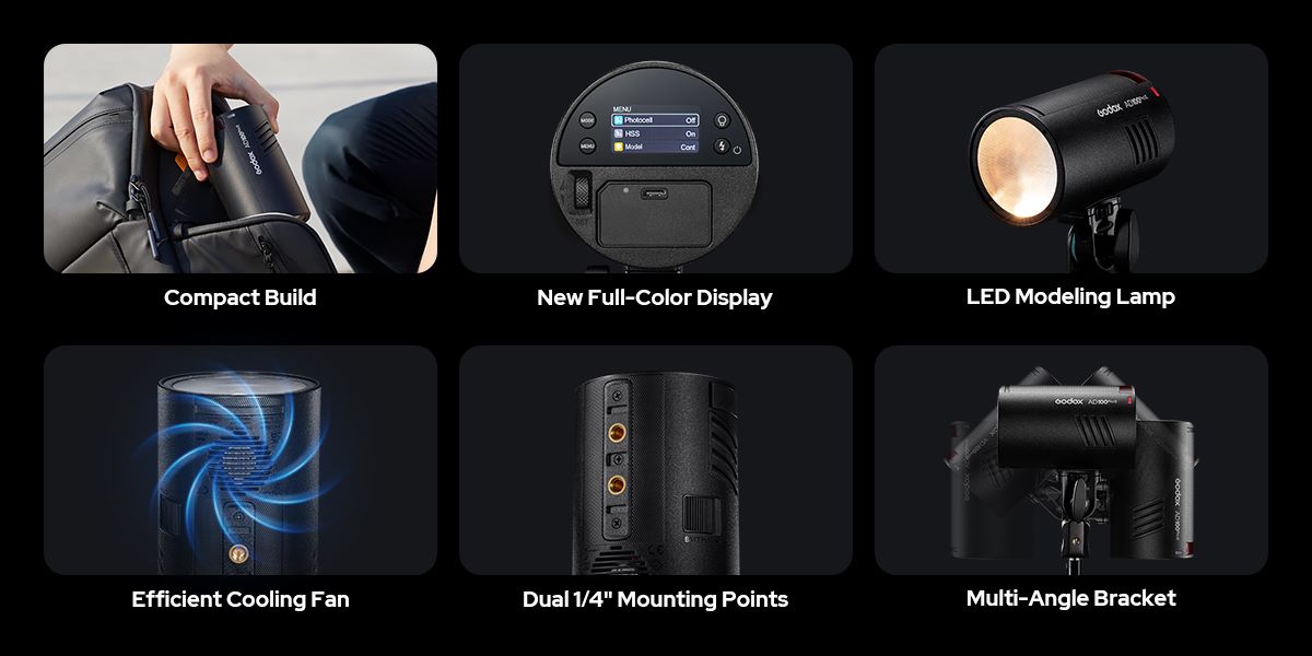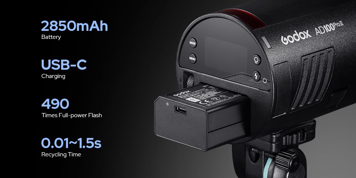 Mang lại công suất 100Ws mạnh mẽ, AD100Pro II giờ đây đạt được khả năng đánh đèn flash liên tục ở công suất tối đa từ 60 đến 100 lần nhờ cấu trúc tản nhiệt được nâng cấp - cung cấp đầu ra ổn định và bền bỉ cho các buổi chụp đòi hỏi cường độ cao.