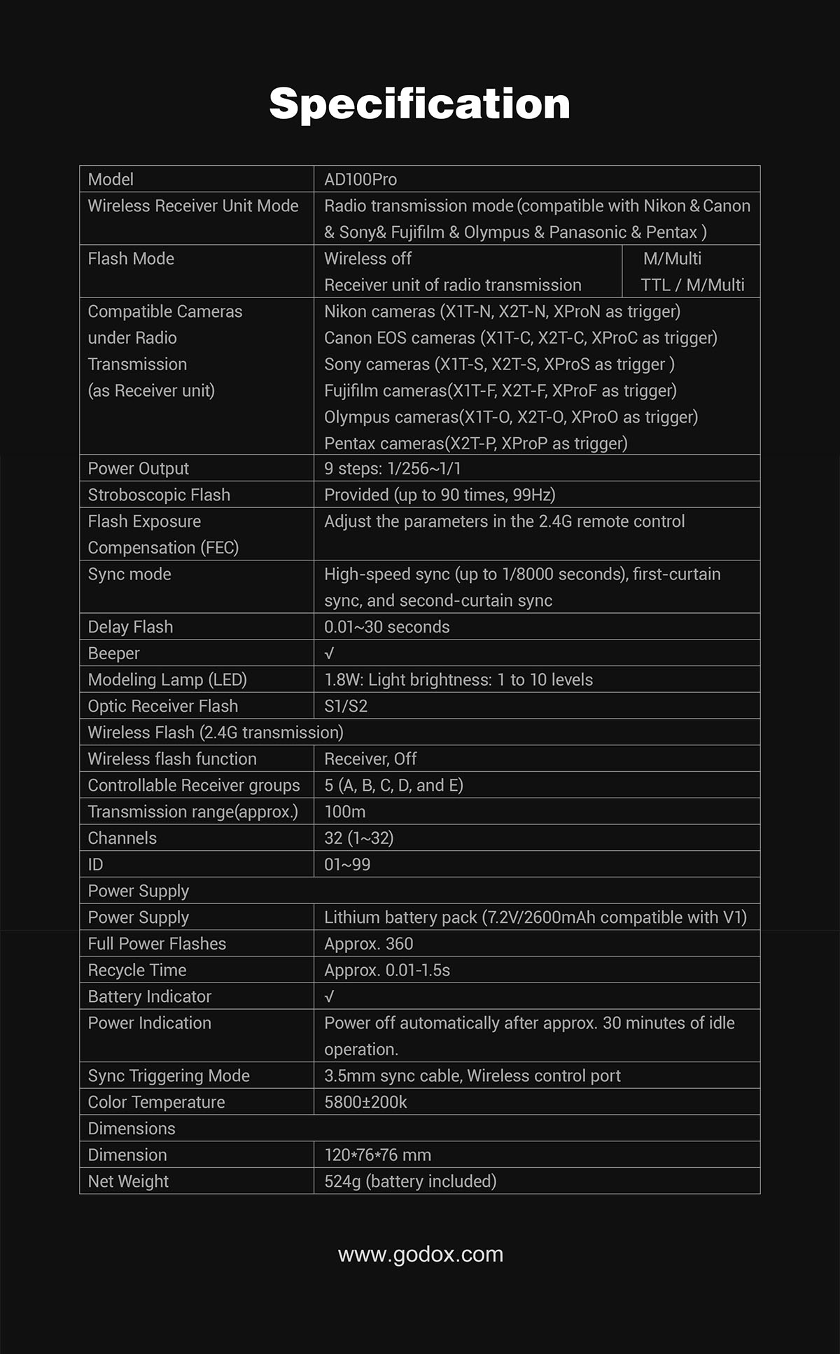 Hoằng Quân - nhà phân phối Đèn Flash Godox - AD100 Pro chính hãng tại Việt Nam. Các sản phẩm có mặt tại khắp các đại lý trên toàn quốc. Quý khách có thể yên tâm đặt hàng tại website: hoangquanco.com miễn phí giao hàng toàn quốc. Ngoài ra, Showroom Hoằng Quân có mặt tại TPHCM, Hà Nội, Đà Nẵng để quý khách có thể đến trải nghiệm sản phẩm tốt nhất!