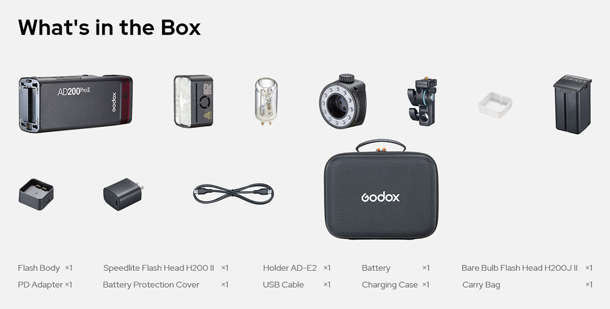 Godox AD200 Pro II là đèn flash được nâng cấp từ AD200Pro và trước đó là AD200 của hãng Godox. Phiên bản II này nổi bật với các đầu đèn flash H200J II và H200 II được nâng cấp, mỗi đầu đèn đều có hai màu để sử dụng linh hoạt như một nguồn sáng liên tục trong quá trình tác nghiệp.