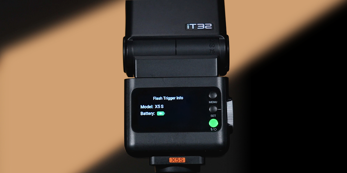 X5 vừa đóng vai trò là đế gắn trên máy ảnh, vừa là bộ phát tín hiệu không dây. Khi gắn vào iT32, nó là chân đế để chụp trên máy; khi tách rời, nó tự động chuyển sang chế độ trigger để điều khiển iT32 hoặc các đèn khác trong hệ thống Godox X.