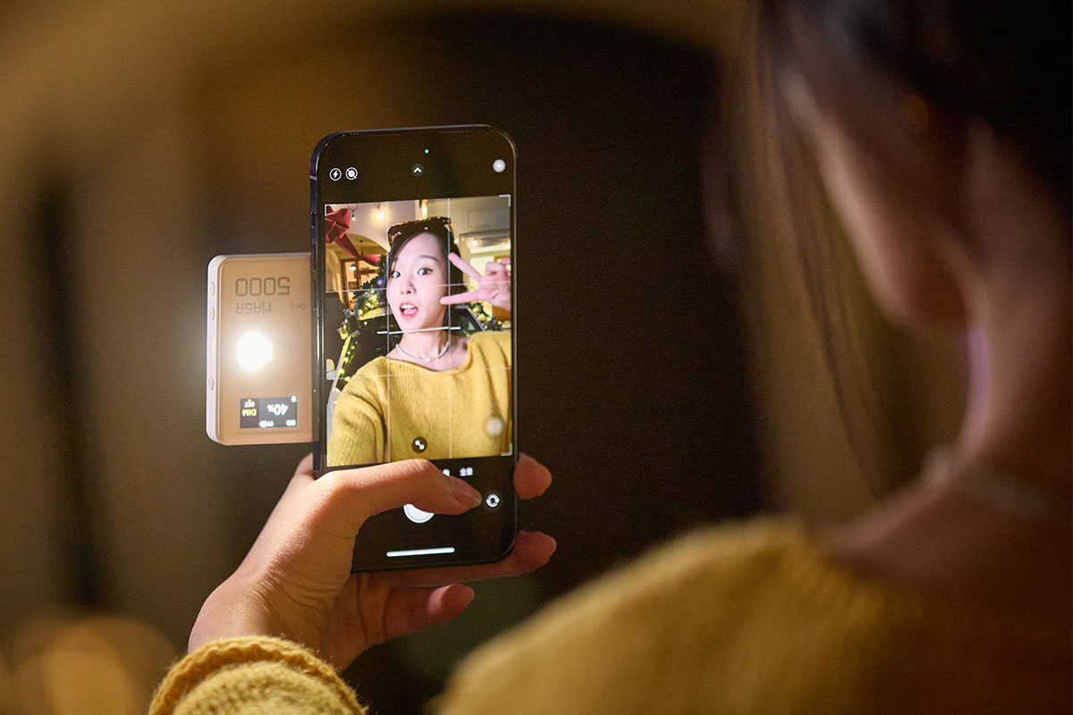 MA5R được tích hợp đèn selfie ngay bên cạnh phần gắn nam châm, cung cấp ánh sáng phụ tiện lợi mỗi khi bạn cần — giúp bạn luôn có những bức ảnh selfie hoàn hảo!