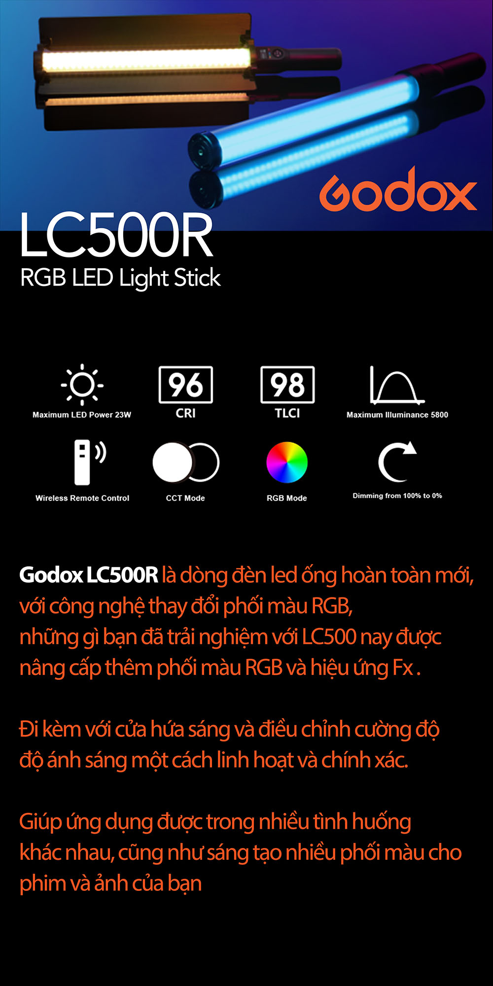 Hoằng Quân xin giới thiệu dòng đèn led mới nhất Godox LED LC500R với nhiều tính năng, công nghệ mới vô cùng độc đáo.