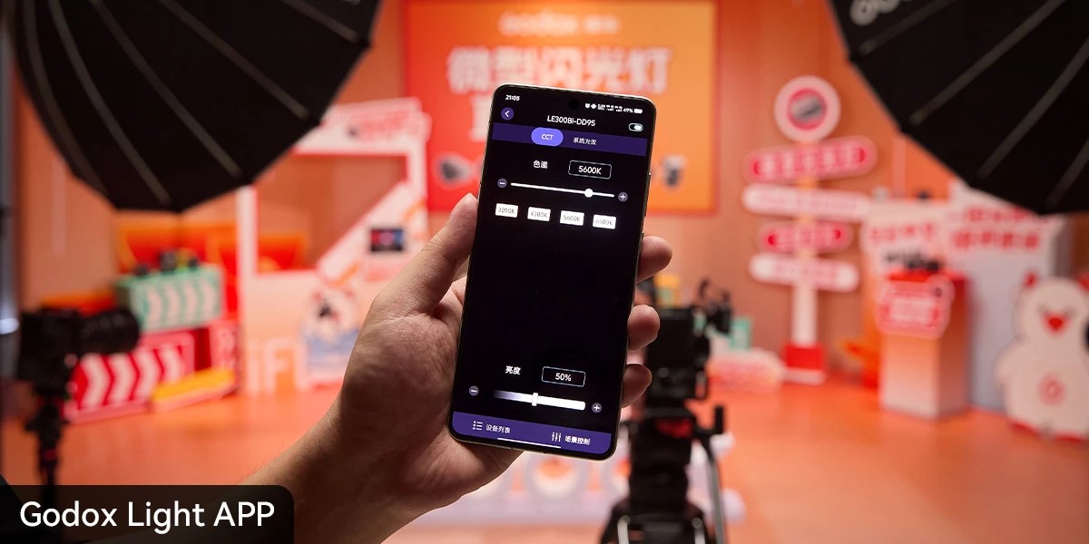 Dòng LE cung cấp khả năng điều khiển đa dạng bao gồm: kết nối DMX có dây, tích hợp mạng CRMX với TimoLink RX, và điều khiển không dây qua Bluetooth bằng ứng dụng Godox Light App. Việc điều chỉnh độ sáng, nhiệt độ màu (CCT) và các hiệu ứng FX trở nên liền mạch và mượt mà.