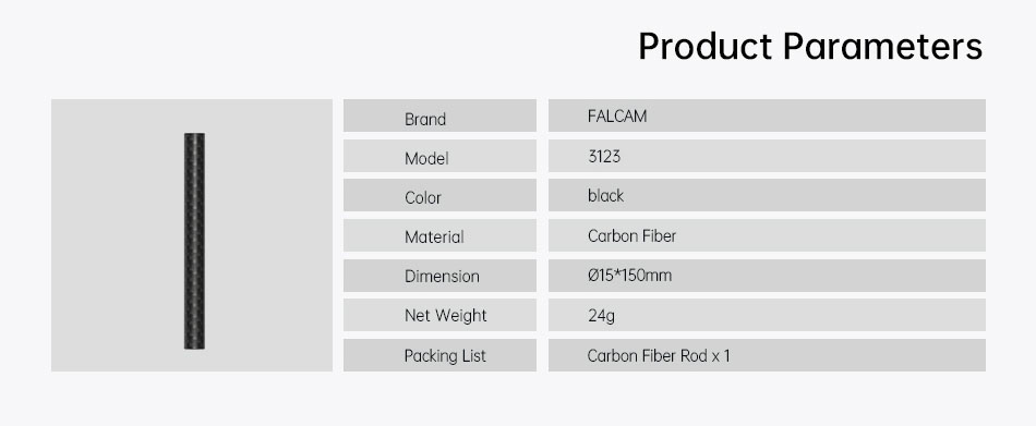Hoằng Quân - nhà phân phối Falcam 15*150mm Carbon Fiber Rod - 3123 chính hãng tại Việt Nam. Các sản phẩm có mặt tại khắp các đại lý trên toàn quốc. Quý khách có thể yên tâm đặt hàng tại website: hoangquanco.com miễn phí giao hàng toàn quốc. Ngoài ra, Showroom Hoằng Quân có mặt tại TPHCM, Hà Nội, Đà Nẵng để quý khách có thể đến trải nghiệm sản phẩm tốt nhất!