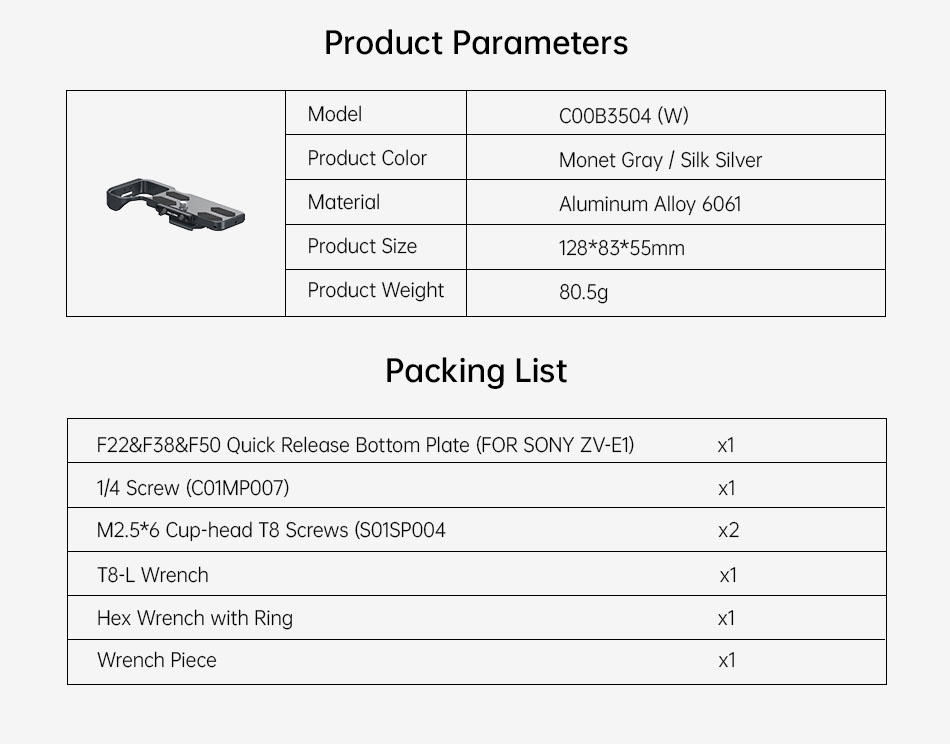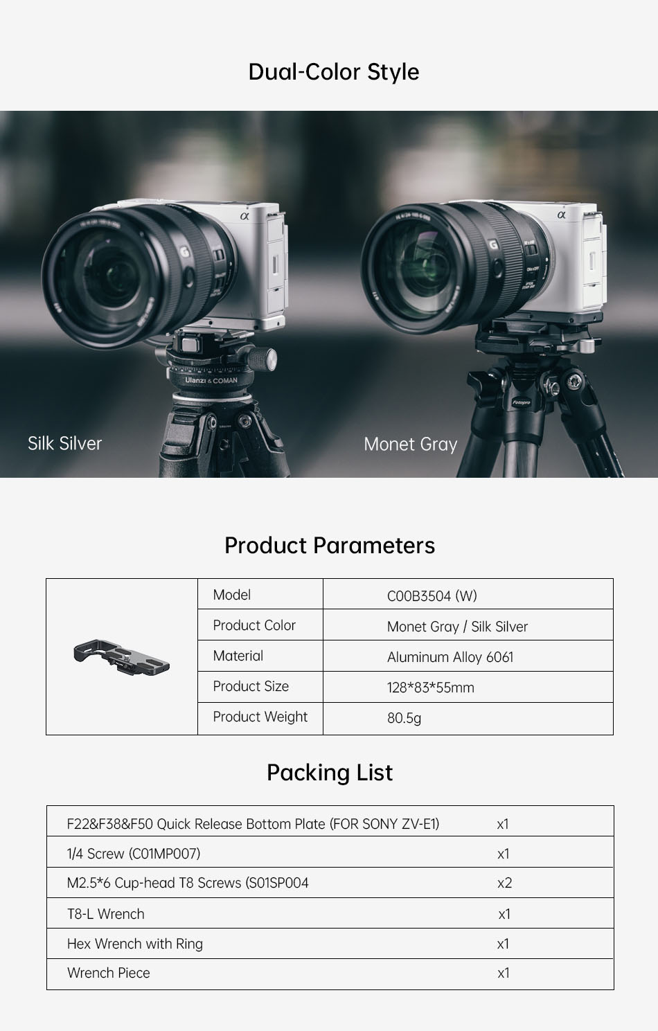 Hoằng Quân - nhà phân phối Falcam F22 & F38 & F50 Quick Release Bottom Plate Silk Silver (FOR SONY ZV-E1) - C00B3504W chính hãng tại Việt Nam. Các sản phẩm có mặt tại khắp các đại lý trên toàn quốc. Quý khách có thể yên tâm đặt hàng tại website: hoangquanco.com miễn phí giao hàng toàn quốc. Ngoài ra, Showroom Hoằng Quân có mặt tại TPHCM, Hà Nội, Đà Nẵng để quý khách có thể đến trải nghiệm sản phẩm tốt nhất!