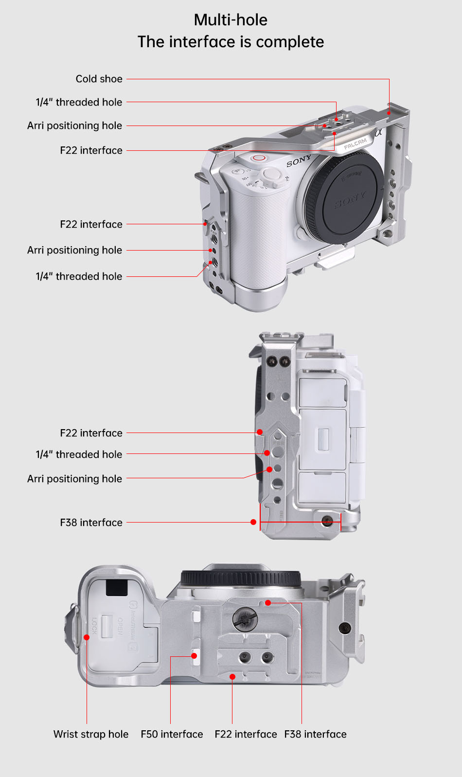 Hoằng Quân - nhà phân phối Falcam F22 & F38 & F50 Quick Release Cage Silk Silver (FOR SONY ZV-E1) - C00B3501W chính hãng tại Việt Nam. Các sản phẩm có mặt tại khắp các đại lý trên toàn quốc. Quý khách có thể yên tâm đặt hàng tại website: hoangquanco.com miễn phí giao hàng toàn quốc. Ngoài ra, Showroom Hoằng Quân có mặt tại TPHCM, Hà Nội, Đà Nẵng để quý khách có thể đến trải nghiệm sản phẩm tốt nhất!