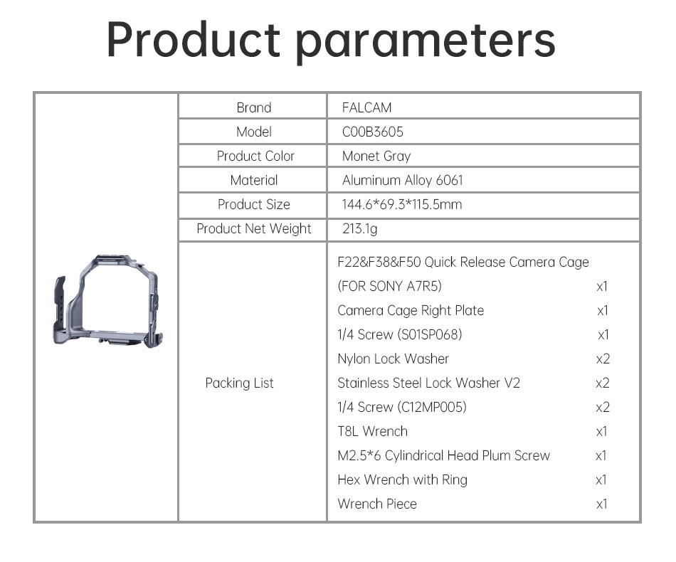 Hoằng Quân - nhà phân phối Falcam F22 & F38 & F50 Quick Release Camera Cage (FOR SONY A7R5/A1/A7M4) - C00B3605 chính hãng tại Việt Nam. Các sản phẩm có mặt tại khắp các đại lý trên toàn quốc. Quý khách có thể yên tâm đặt hàng tại website: hoangquanco.com miễn phí giao hàng toàn quốc. Ngoài ra, Showroom Hoằng Quân có mặt tại TPHCM, Hà Nội, Đà Nẵng để quý khách có thể đến trải nghiệm sản phẩm tốt nhất!