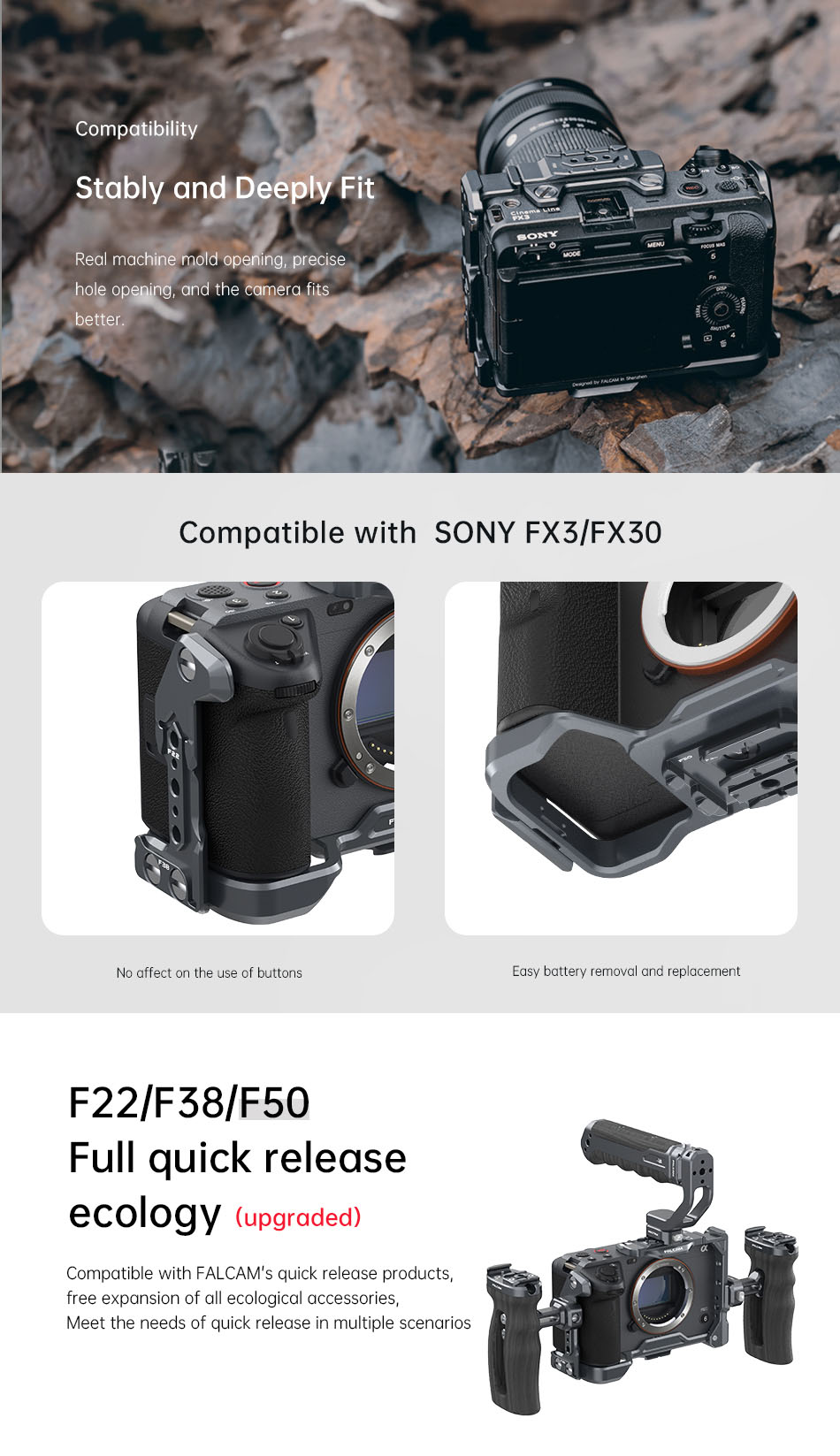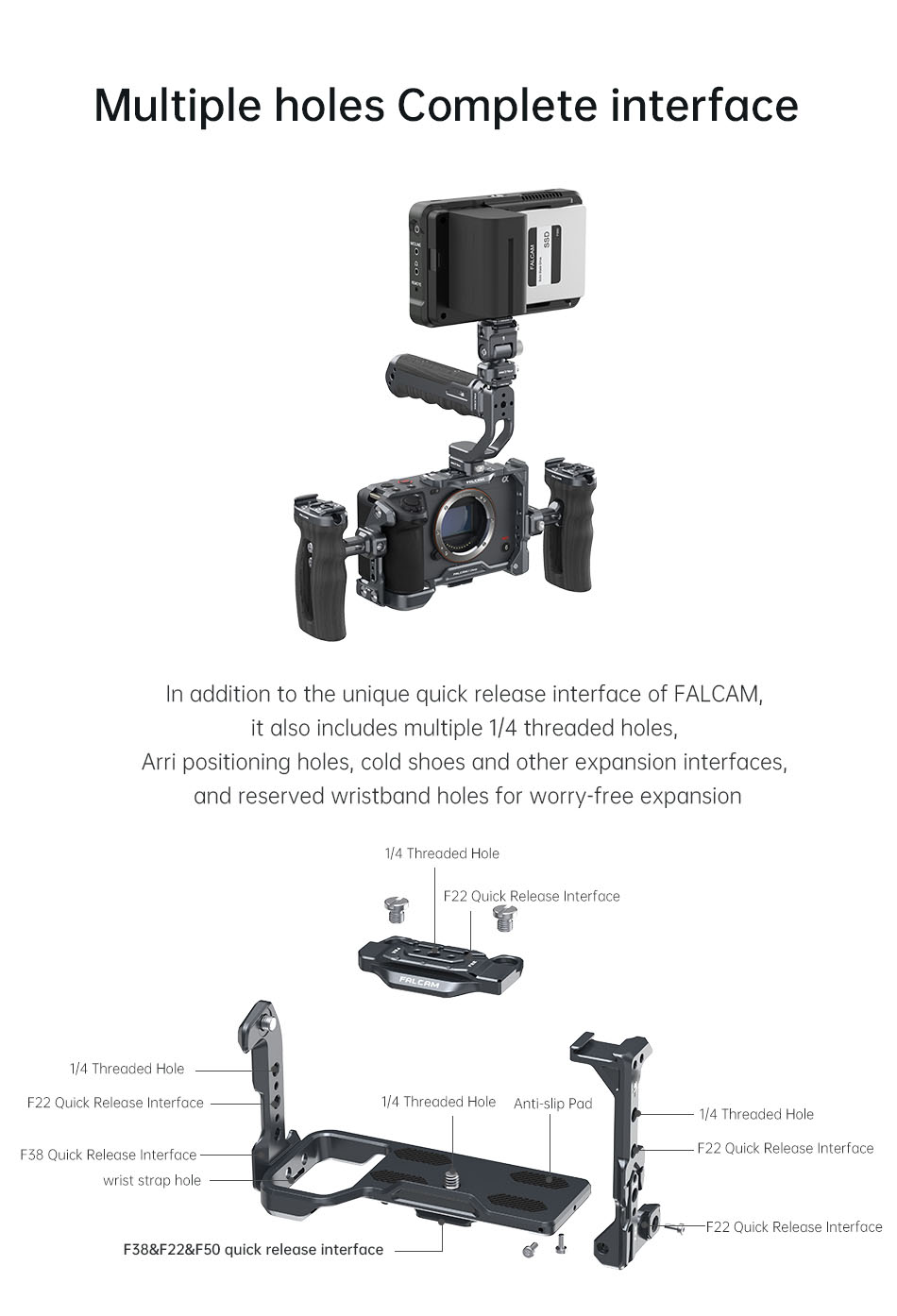 Hoằng Quân - nhà phân phối Falcam F22 & F38 & F50 Quick Release Camera Cage V2 (FOR SONY FX3/FX30) - 2823A chính hãng tại Việt Nam. Các sản phẩm có mặt tại khắp các đại lý trên toàn quốc. Quý khách có thể yên tâm đặt hàng tại website: hoangquanco.com miễn phí giao hàng toàn quốc. Ngoài ra, Showroom Hoằng Quân có mặt tại TPHCM, Hà Nội, Đà Nẵng để quý khách có thể đến trải nghiệm sản phẩm tốt nhất!