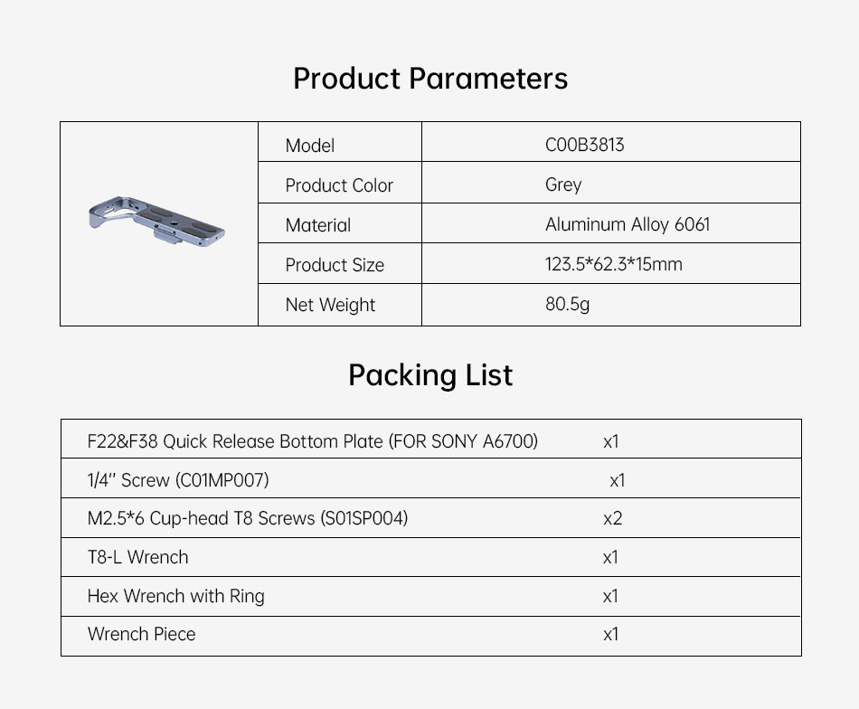 Hoằng Quân - nhà phân phối Falcam F22 & F38 Quick Release Bottom Plate (FOR SONY A6700) - C00B3813 chính hãng tại Việt Nam. Các sản phẩm có mặt tại khắp các đại lý trên toàn quốc. Quý khách có thể yên tâm đặt hàng tại website: hoangquanco.com miễn phí giao hàng toàn quốc. Ngoài ra, Showroom Hoằng Quân có mặt tại TPHCM, Hà Nội, Đà Nẵng để quý khách có thể đến trải nghiệm sản phẩm tốt nhất!