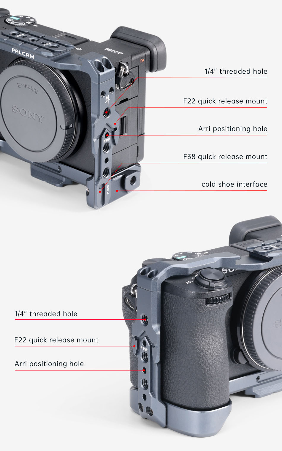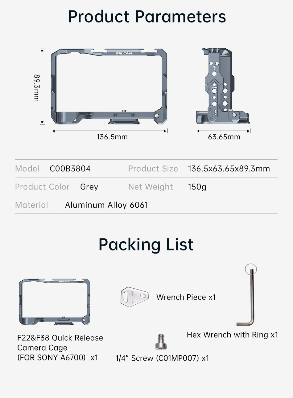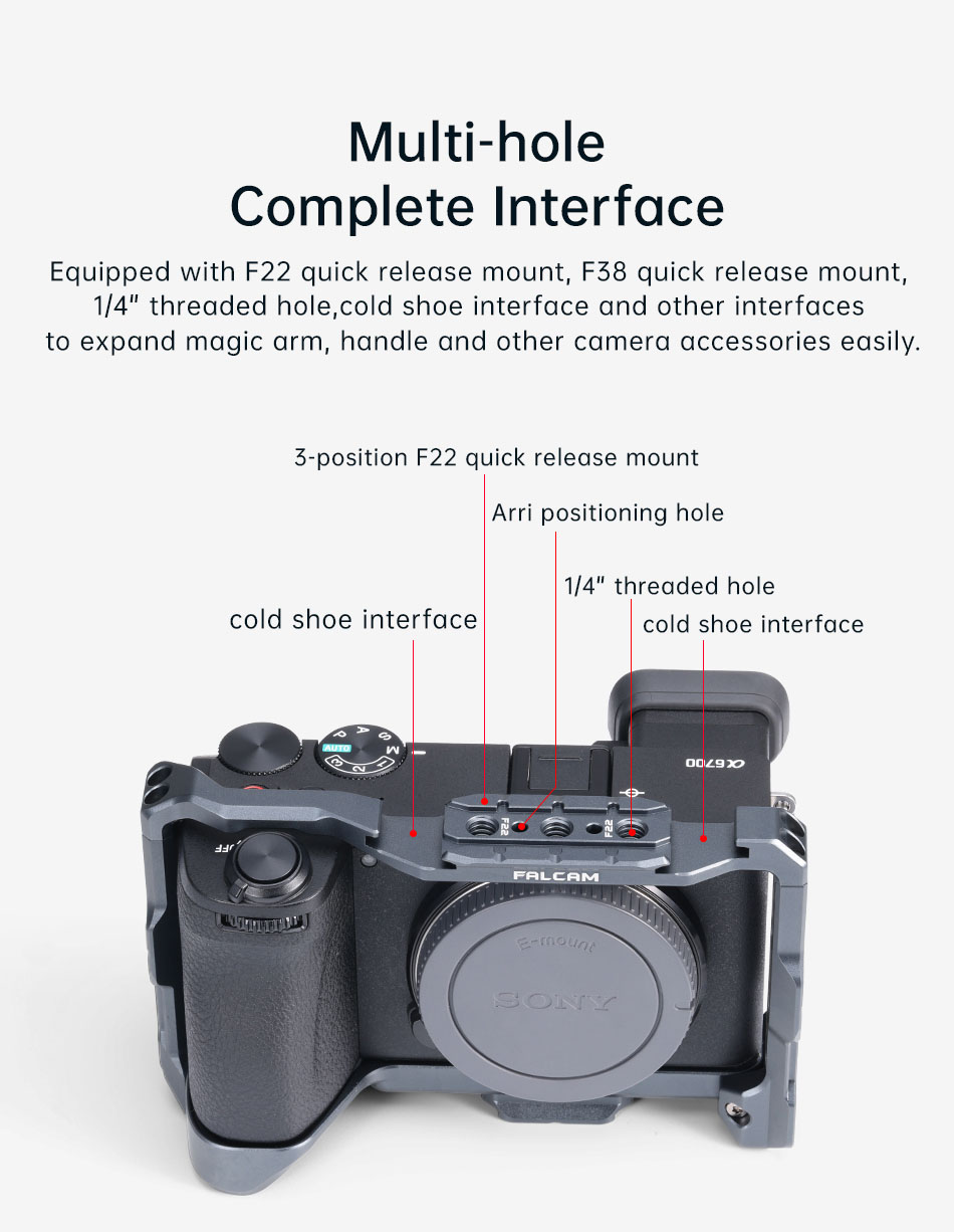 Hoằng Quân - nhà phân phối Falcam F22 & F38 Quick Release Camera Cage (FOR SONY A6700) chính hãng tại Việt Nam. Các sản phẩm có mặt tại khắp các đại lý trên toàn quốc. Quý khách có thể yên tâm đặt hàng tại website: hoangquanco.com miễn phí giao hàng toàn quốc. Ngoài ra, Showroom Hoằng Quân có mặt tại TPHCM, Hà Nội, Đà Nẵng để quý khách có thể đến trải nghiệm sản phẩm tốt nhất!