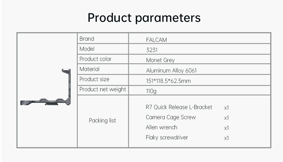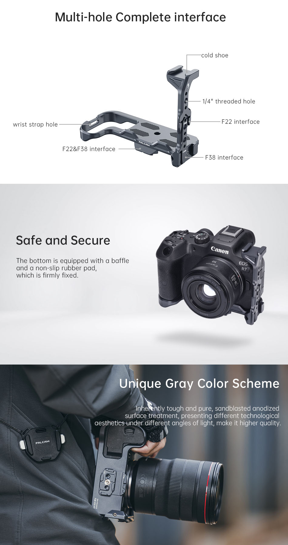 Hoằng Quân - nhà phân phối Falcam F22 & F38 Quick Release Camera L Bracket (FOR EOS R7) chính hãng tại Việt Nam. Các sản phẩm có mặt tại khắp các đại lý trên toàn quốc. Quý khách có thể yên tâm đặt hàng tại website: hoangquanco.com miễn phí giao hàng toàn quốc. Ngoài ra, Showroom Hoằng Quân có mặt tại TPHCM, Hà Nội, Đà Nẵng để quý khách có thể đến trải nghiệm sản phẩm tốt nhất!
