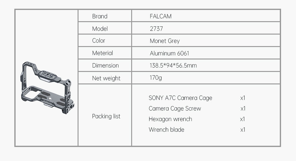 Hoằng Quân - nhà phân phối Falcam F22 & F38 Sony Quick Release Camera Cage (FOR SONY A7C) - 2737 chính hãng tại Việt Nam. Các sản phẩm có mặt tại khắp các đại lý trên toàn quốc. Quý khách có thể yên tâm đặt hàng tại website: hoangquanco.com miễn phí giao hàng toàn quốc. Ngoài ra, Showroom Hoằng Quân có mặt tại TPHCM, Hà Nội, Đà Nẵng để quý khách có thể đến trải nghiệm sản phẩm tốt nhất!