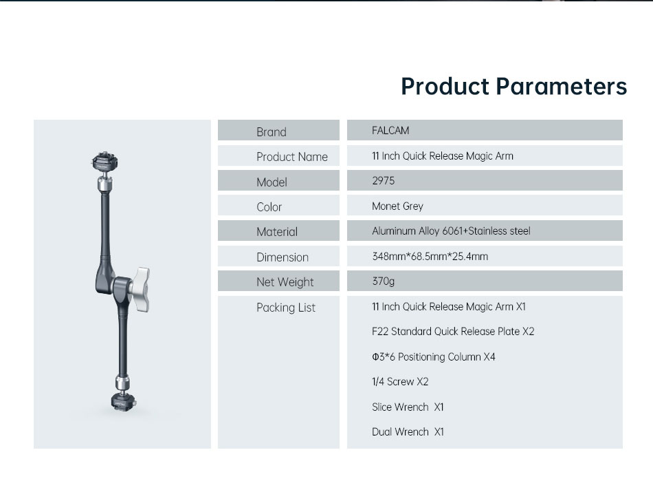 Hoằng Quân - nhà phân phối Falcam F22 Quick Release 11 Inch Extension Magic Arm Kit - 2975 chính hãng tại Việt Nam. Các sản phẩm có mặt tại khắp các đại lý trên toàn quốc. Quý khách có thể yên tâm đặt hàng tại website: hoangquanco.com miễn phí giao hàng toàn quốc. Ngoài ra, Showroom Hoằng Quân có mặt tại TPHCM, Hà Nội, Đà Nẵng để quý khách có thể đến trải nghiệm sản phẩm tốt nhất!