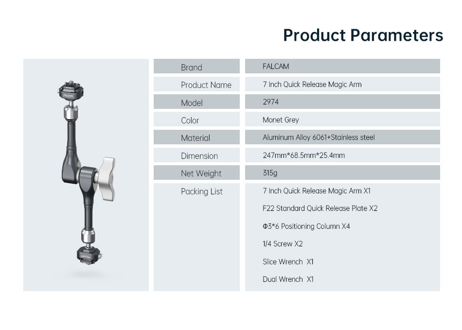 Hoằng Quân - nhà phân phối Falcam F22 Quick Release 7 Inch Extension Magic Arm Kit - 2974 chính hãng tại Việt Nam. Các sản phẩm có mặt tại khắp các đại lý trên toàn quốc. Quý khách có thể yên tâm đặt hàng tại website: hoangquanco.com miễn phí giao hàng toàn quốc. Ngoài ra, Showroom Hoằng Quân có mặt tại TPHCM, Hà Nội, Đà Nẵng để quý khách có thể đến trải nghiệm sản phẩm tốt nhất!