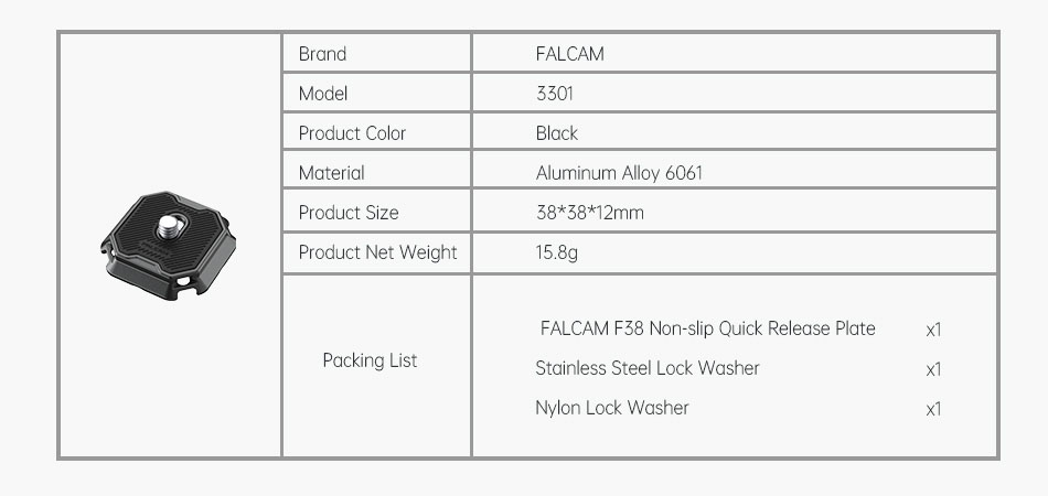 Hoằng Quân - nhà phân phối Falcam F38 Non-slip Quick Release Plate - 3301 chính hãng tại Việt Nam. Các sản phẩm có mặt tại khắp các đại lý trên toàn quốc. Quý khách có thể yên tâm đặt hàng tại website: hoangquanco.com miễn phí giao hàng toàn quốc. Ngoài ra, Showroom Hoằng Quân có mặt tại TPHCM, Hà Nội, Đà Nẵng để quý khách có thể đến trải nghiệm sản phẩm tốt nhất!