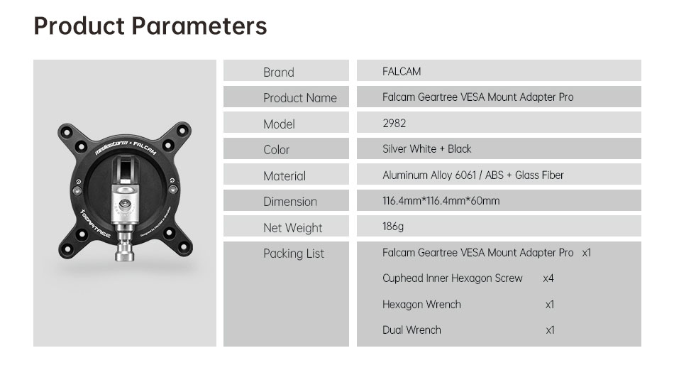 Hoằng Quân - nhà phân phối Falcam Geartree VESA Mount Adapter Pro - 2982 chính hãng tại Việt Nam. Các sản phẩm có mặt tại khắp các đại lý trên toàn quốc. Quý khách có thể yên tâm đặt hàng tại website: hoangquanco.com miễn phí giao hàng toàn quốc. Ngoài ra, Showroom Hoằng Quân có mặt tại TPHCM, Hà Nội, Đà Nẵng để quý khách có thể đến trải nghiệm sản phẩm tốt nhất!