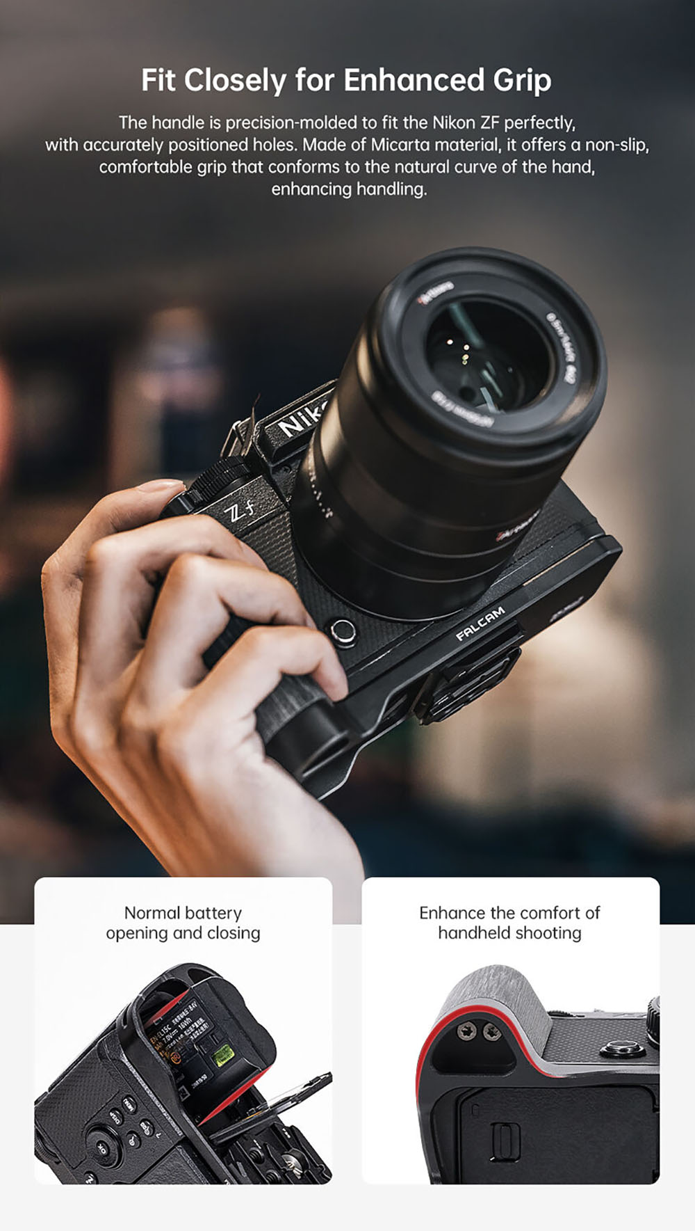 Hoằng Quân - nhà phân phối Falcam L-Shaped Grip with F22 & F38 QR for Nikon Zf - C00A4308 chính hãng tại Việt Nam. Các sản phẩm có mặt tại khắp các đại lý trên toàn quốc. Quý khách có thể yên tâm đặt hàng tại website: hoangquanco.com miễn phí giao hàng toàn quốc. Ngoài ra, Showroom Hoằng Quân có mặt tại TPHCM, Hà Nội, Đà Nẵng để quý khách có thể đến trải nghiệm sản phẩm tốt nhất!