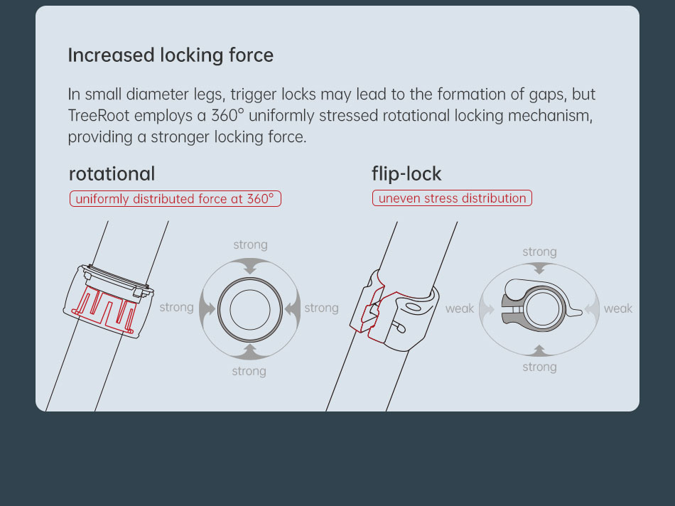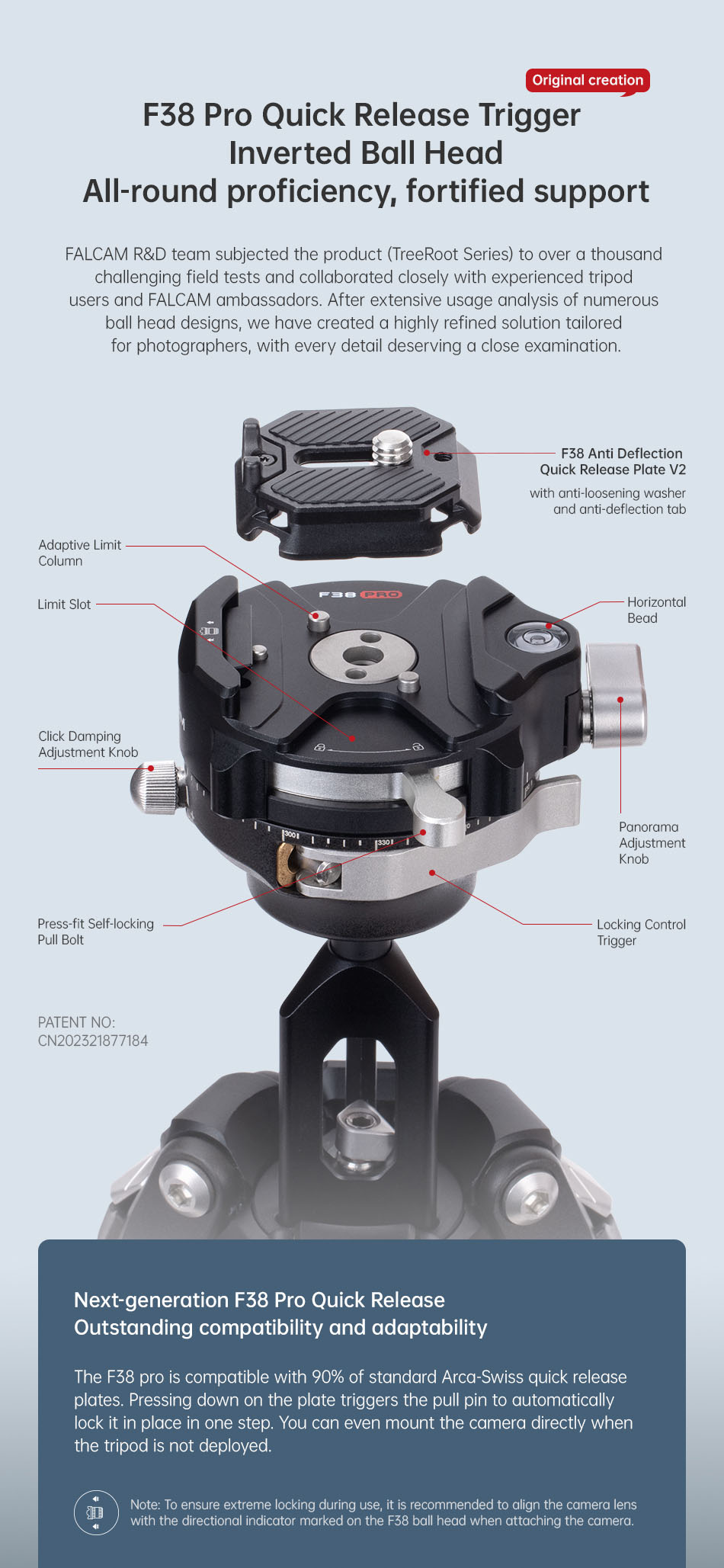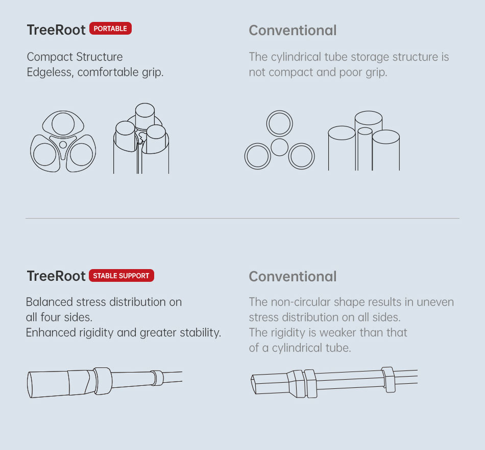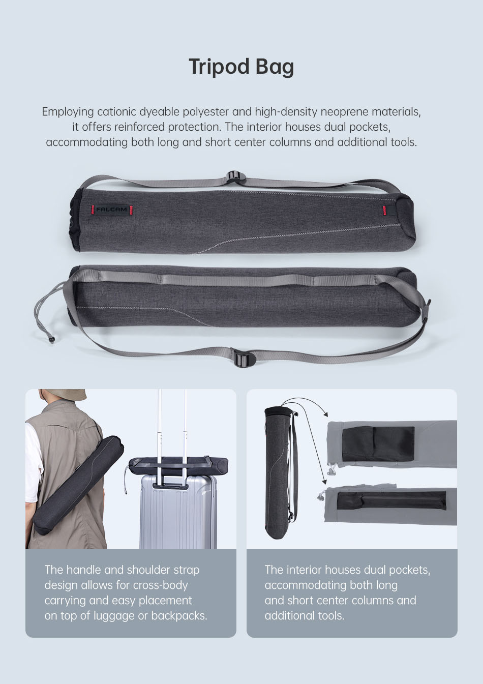 FALCAM TreeRoot Quick Lock Travel Tripod có khả năng tải trọng ấn tượng với 50 kg khi các ống chân cố định, 10-20 kg khi sử dụng trụ giữa và 5 kg khi sử dụng ballhead. Đường kính các ống chân lần lượt là 26 x 40.75mm, Φ22 mm, Φ17.9 mm, và Φ13.8 mm, cùng với đường kính ballhead là Φ32 mm, đảm bảo sự ổn định và chắc chắn trong mọi tình huống chụp ảnh. Đây chính là người bạn đồng hành đáng tin cậy cho mọi nhiếp ảnh gia, từ những chuyến phiêu lưu ngoài trời đến các buổi chụp chuyên nghiệp trong studio.