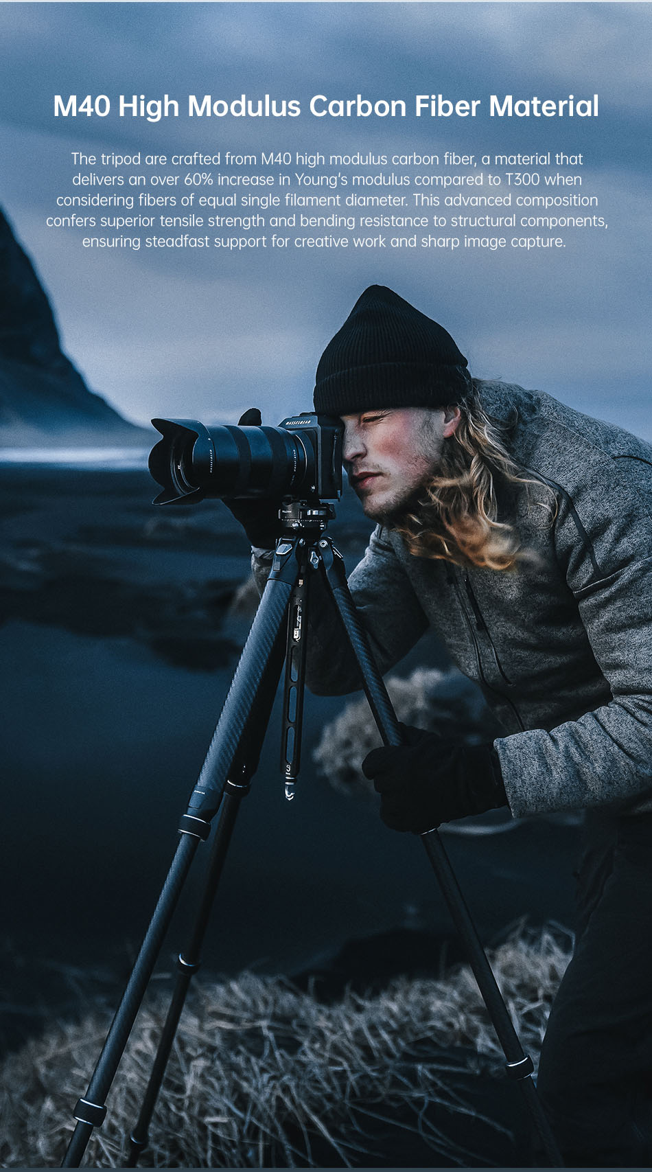 Chân máy ảnh FALCAM TreeRoot Quick Lock Travel Tripod, model T00A4301, là sự kết hợp hoàn hảo giữa chất liệu carbon fiber và nhôm, mang đến độ bền bỉ và nhẹ nhàng tối ưu. Với chiều cao tối đa lên đến 1552 mm khi sử dụng trụ giữa và 1305 mm khi không sử dụng trụ giữa, chân máy này mang lại sự linh hoạt tuyệt vời cho các nhiếp ảnh gia. Chiều cao thấp nhất chỉ 168 mm và khả năng gấp gọn dài 473 mm, cùng trọng lượng chỉ 1.5 kg, làm cho chân máy này trở nên lý tưởng cho việc du lịch và di chuyển.