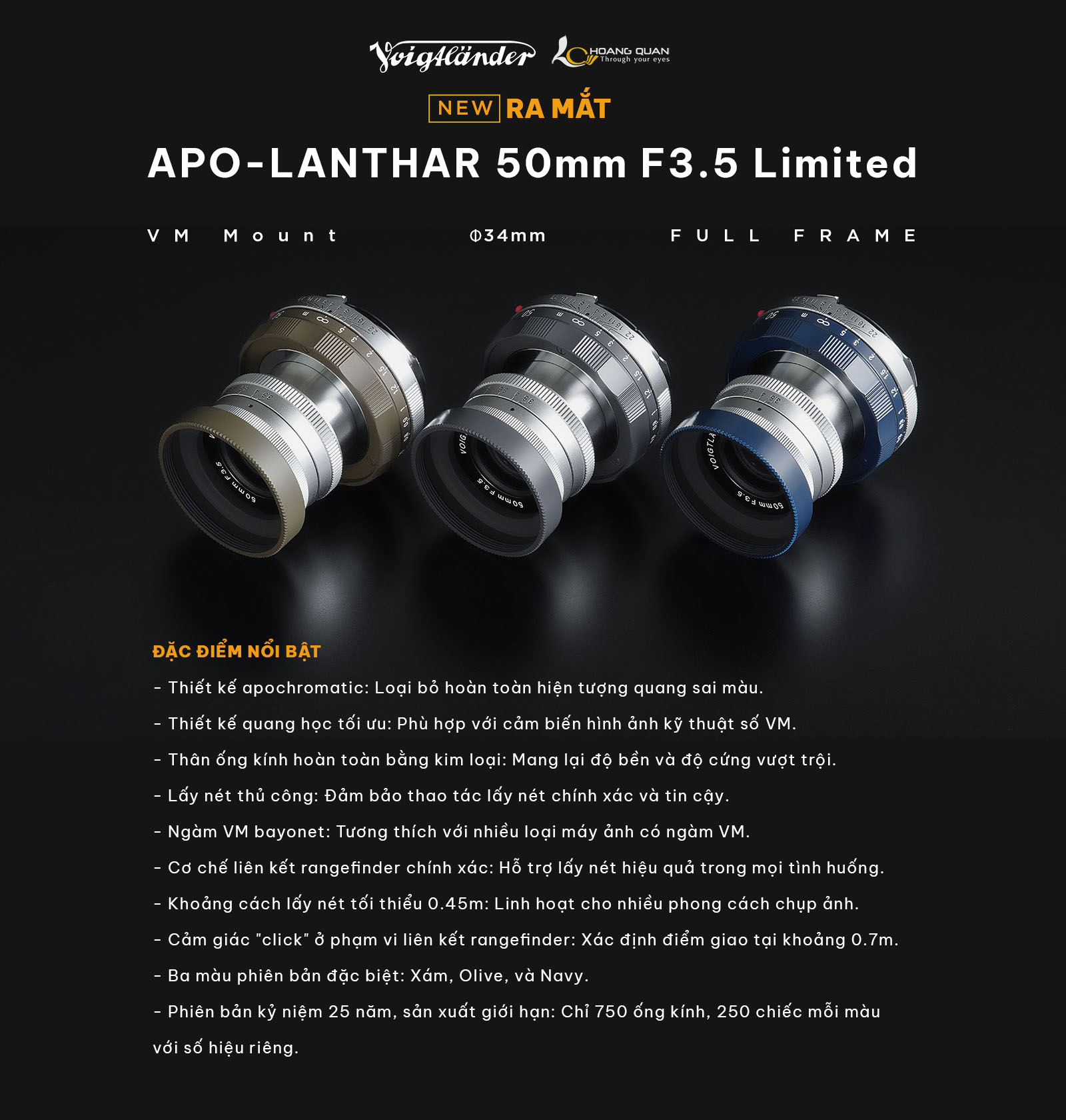 Ngày 11/11/2024, Ống kính APO-LANTHAR 50mm F3.5 Limited Edition, với ngàm VM mount, được ra mắt để kỷ niệm 25 năm thương hiệu Voigtländer do Cosina sản xuất. Đây là mẫu ống kính có thể thay đổi ngàm cho máy ảnh rangefinder VM mount, thiết kế nhằm tôn vinh chất lượng quang học cao trong một phong cách cổ điển.