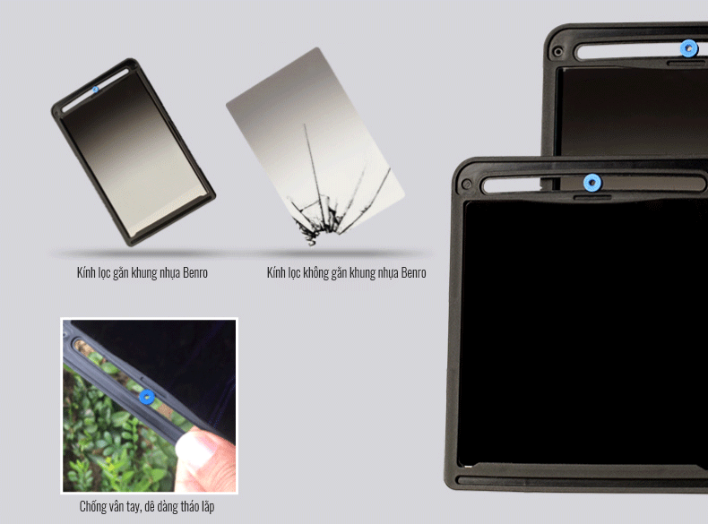 - Khung nhựa gắn kính lọc giúp bảo vệ kính lọc tốt hơn tránh rơi vỡ và tránh vân tay bám lên kính