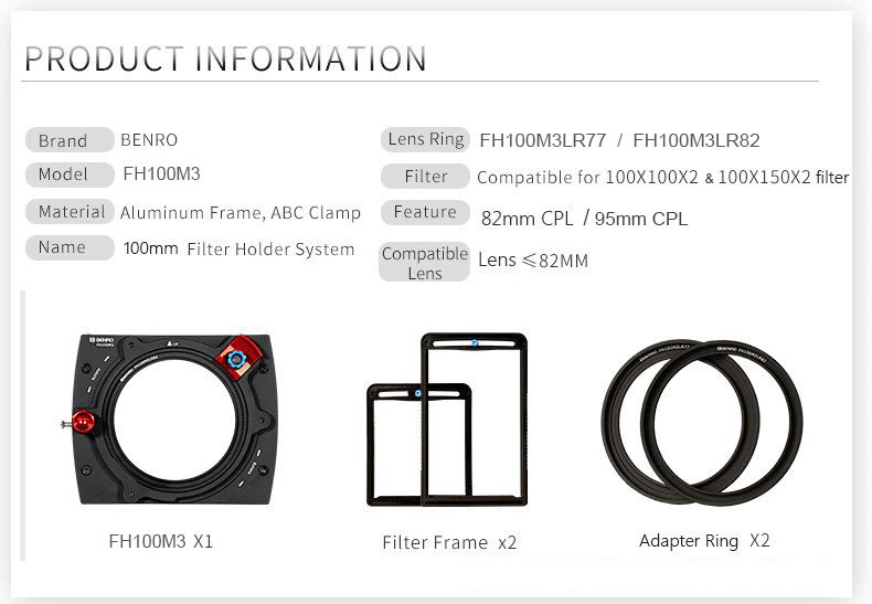 Bộ Khay giữ kính lọc vuông Benro FH100M3 bao gồm: