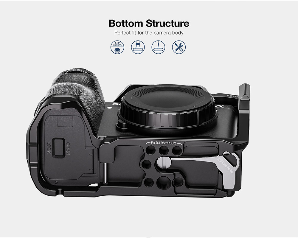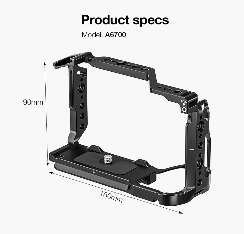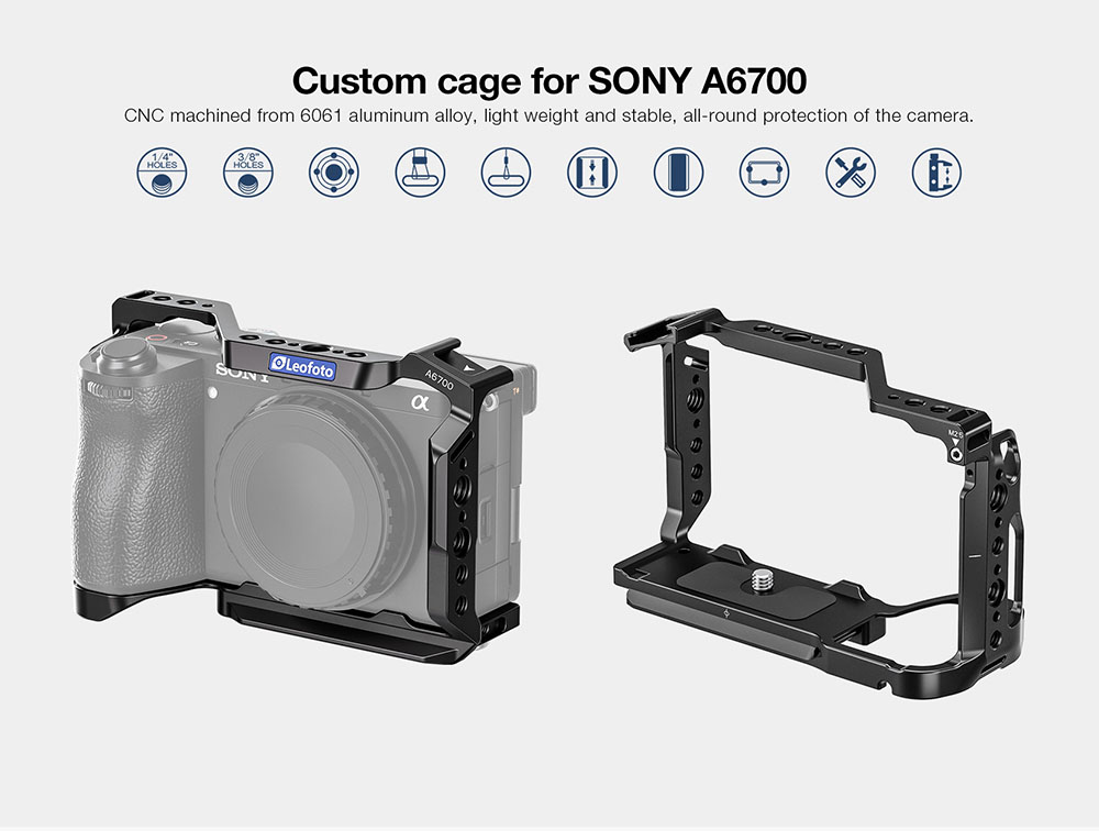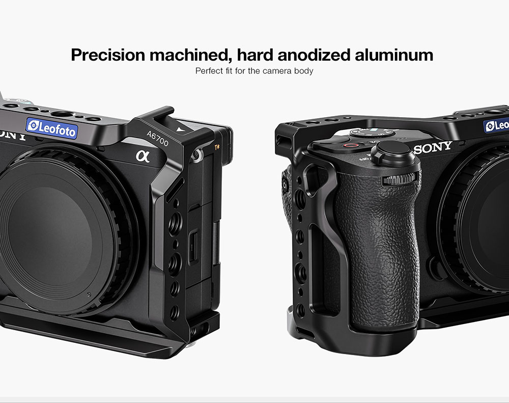 Leofoto A6700 là phụ kiện bảo vệ máy ảnh - khung bảo vệ Cage cho Sony A6700 chất liệu nhôm CNC của hãng Leofoto.