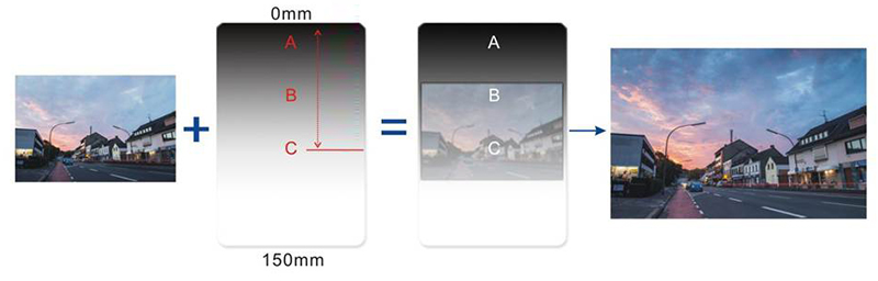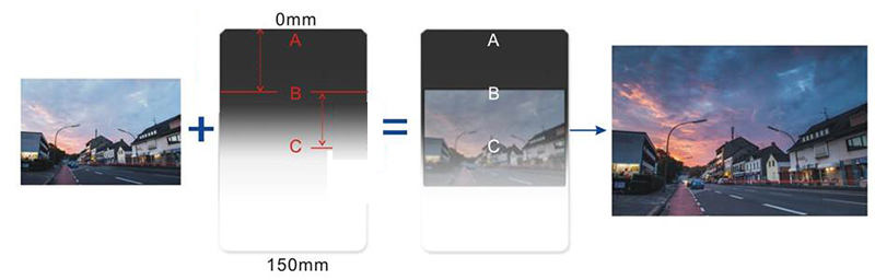Hệ kính lọc Master của Benro được phân chia lại các vùng giảm sáng một cách khoa học hơn, đáp ứng tốt hơn cho nhu cầu của các nhiếp ảnh gia. Theo sự phân chia ở phiên bản cũ, khoảng chuyển vùng là từ A sáng B. Nhưng thực tế, khi sử dụng để chụp phong cảnh, chúng ta chỉ sử dụng phần giữa của kính lọc GND. Vì thế, tính năng giảm sáng theo vùng của kính lọc GND không được sử dụng một cách hiệu quả.