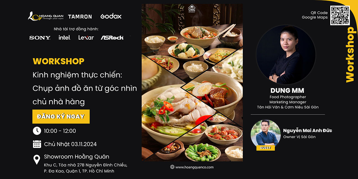 Workshop Kinh nghiệm thực chiến: Chụp ảnh đồ ăn từ góc nhìn chủ nhà hàng của Dung MM (Food Photographer & Marketing Manager : Tân Hải Vân & Cơm niêu Sài Gòn) cùng khách mời Nguyễn Mai Anh Đức (Owner Vị Sài Gòn).