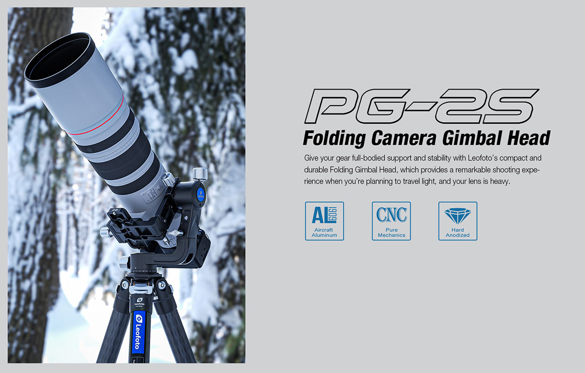 Leofoto Gimbal Head PG-2S là đầu quay chuyên nghiệp được thiết kế đặc biệt để hỗ trợ các hệ thống máy ảnh với ống kính tele lớn. Với khả năng gập gọn tiện lợi cùng trọng lượng chỉ 850g, PG-2S mang đến sự ổn định cao và tính di động vượt trội cho các nhiếp ảnh gia thường xuyên di chuyển. Được gia công từ hợp kim nhôm cao cấp, đầu gimbal này không chỉ bền bỉ mà còn đảm bảo độ cứng vững khi chịu tải nặng lên đến 15kg – lý tưởng cho các ống kính siêu tele trong nhiếp ảnh thể thao hoặc động vật hoang dã.