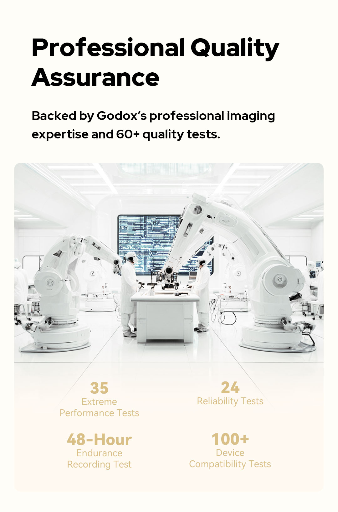 Được bảo chứng bởi chuyên môn hình ảnh chuyên nghiệp của Godox và hơn 60 bài kiểm tra chất lượng.