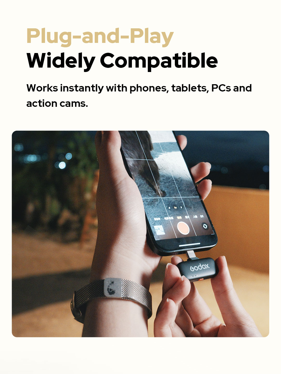 Hoạt động tốt với điện thoại, máy tính bảng, PC và action camera.